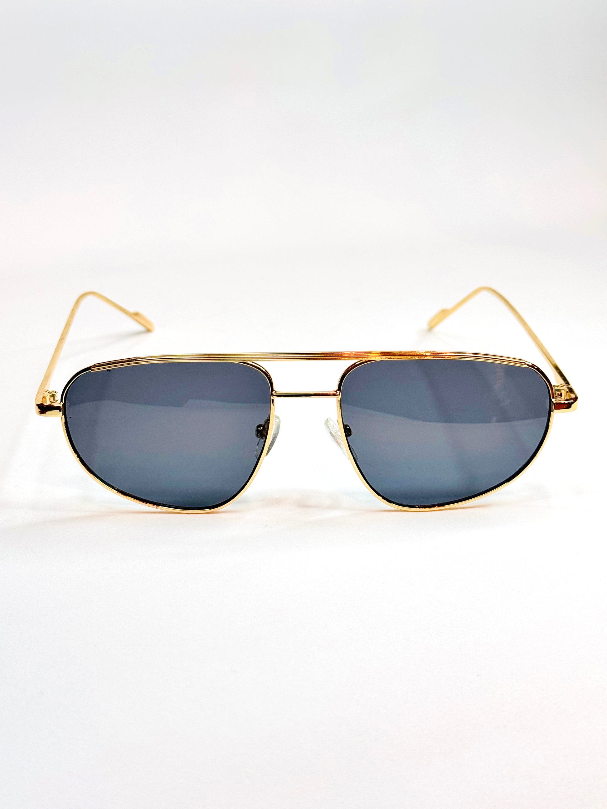 Gafas de sol en color dorado tipo aviador, con micas color negro.