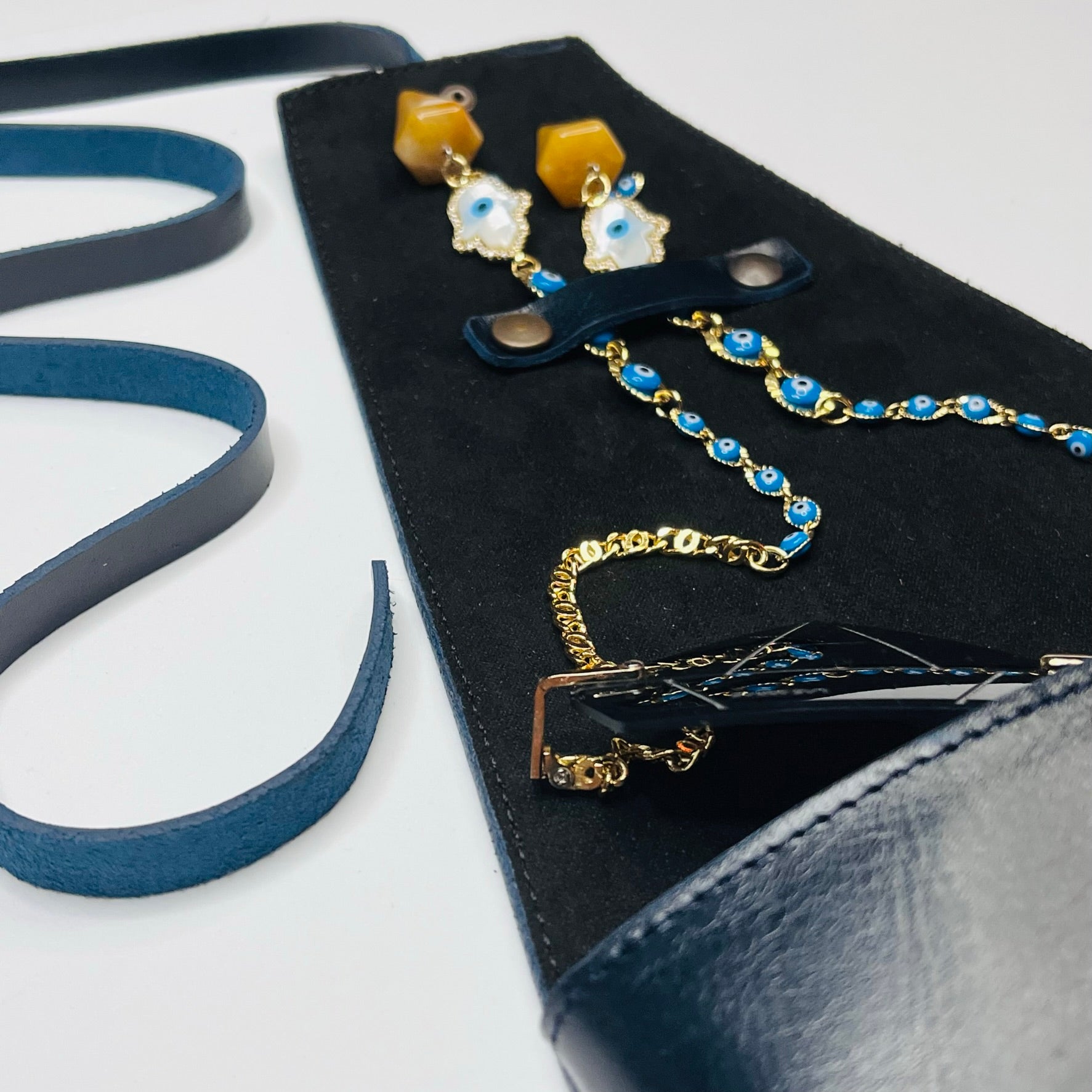 Each case is handmade in the state of Guanajuato, Mexico. The material is leather with suede lining.