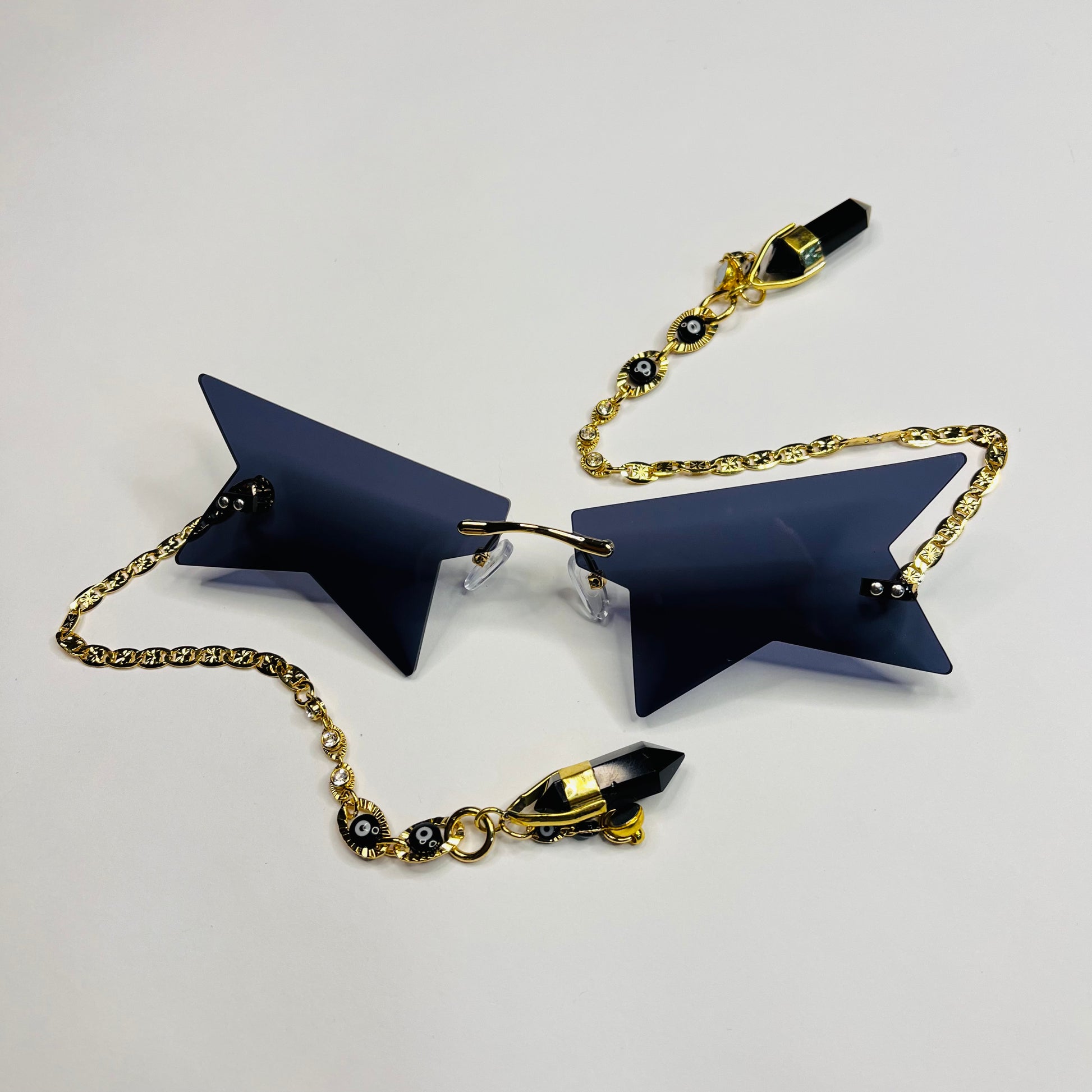 Star shape Black sunglasses with zirconia and black obsidian quartz.