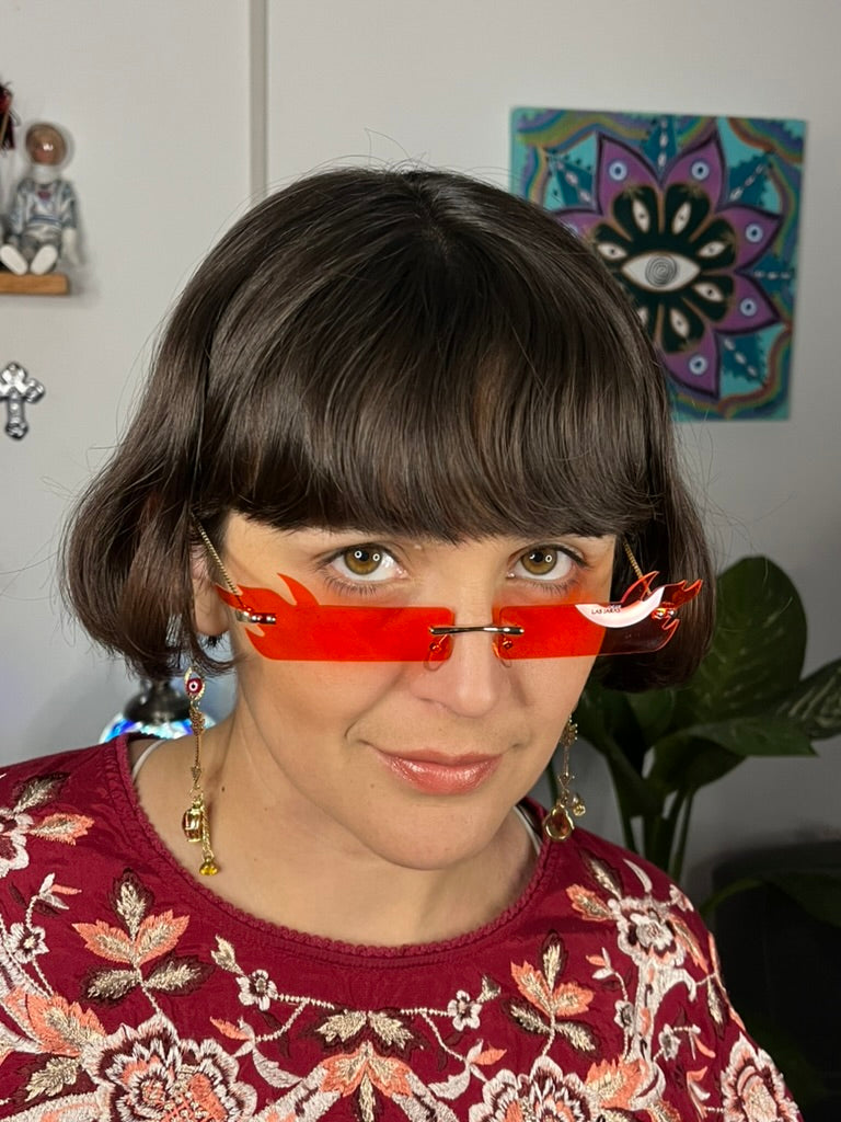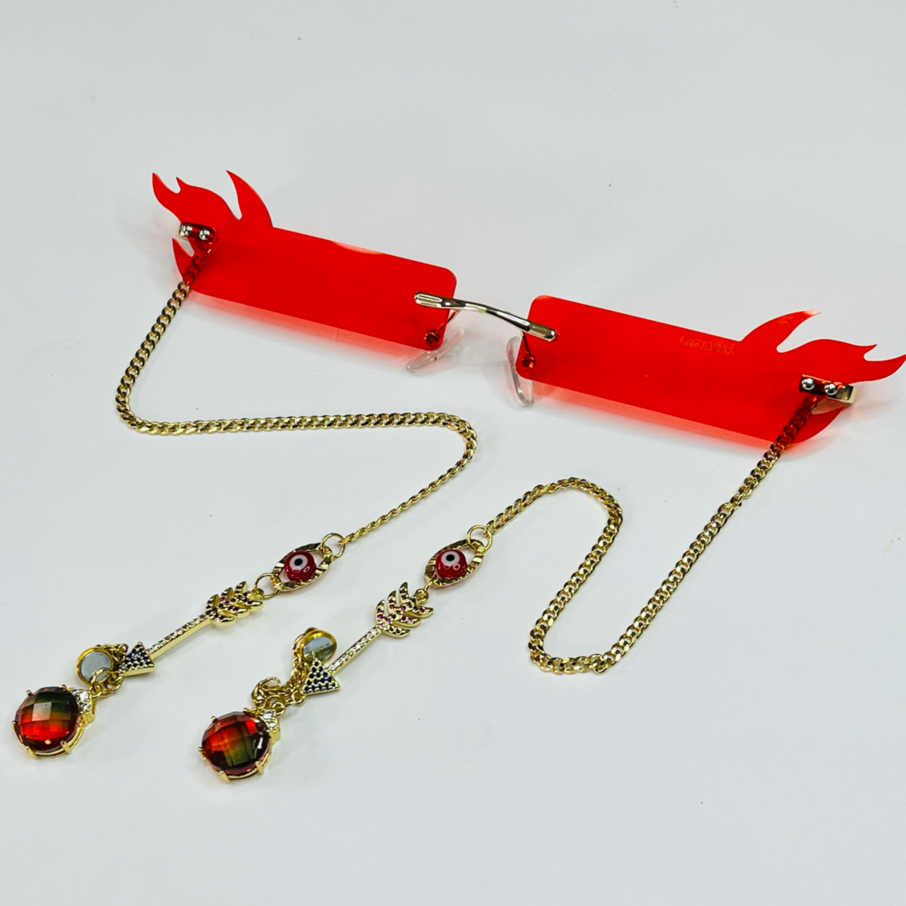 Red Sunglasses with crystal, zirconia, and red Turkish eye.