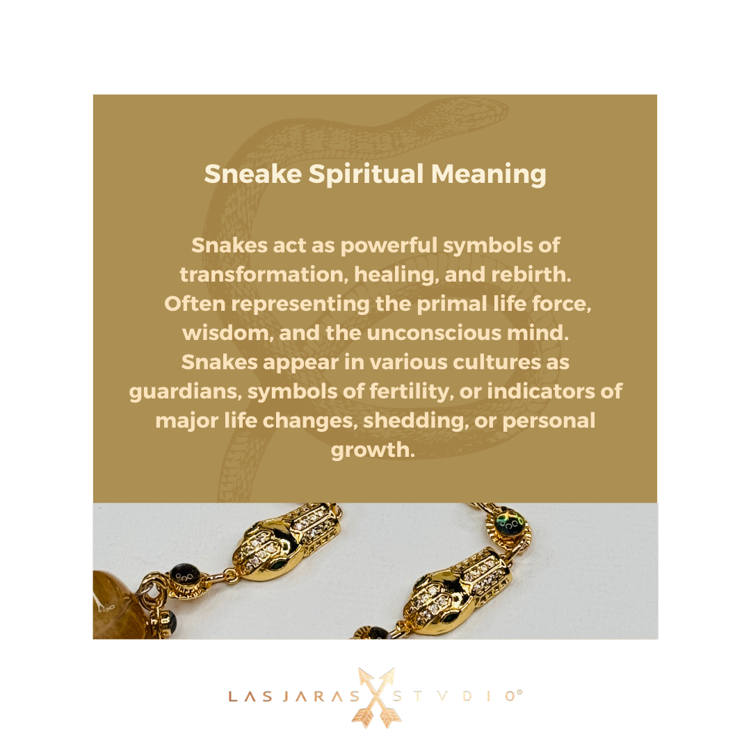 Gafas de sol circulares color verde con cadenas bañadas en oro de 14k, medios de cabeza de serpiente con incrustaciones de zirconia y finales de cuarzo lodolita en forma de piramide.